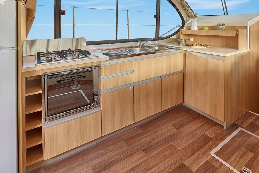 Les bateaux fluviaux sans permis offrent un confort comparable à celui d’un mobil-home ou d’un camping-car. Leur design spécifique, avec un fond plat, permet d’optimiser l’aménagement intérieur, créant des espaces fonctionnels tels que des chambres, des salles de bain et une cuisine équipée. De plus, tous nos modèles (suaf le Riviera 920) sont équipés d’une terrasse extérieure, idéale pour manger en plein air. Un double pilotage (intérieur et extérieur) permet également de profiter du soleil tout en naviguant. Ces aménagements garantissent un confort optimal pour une croisière agréable et détendue.