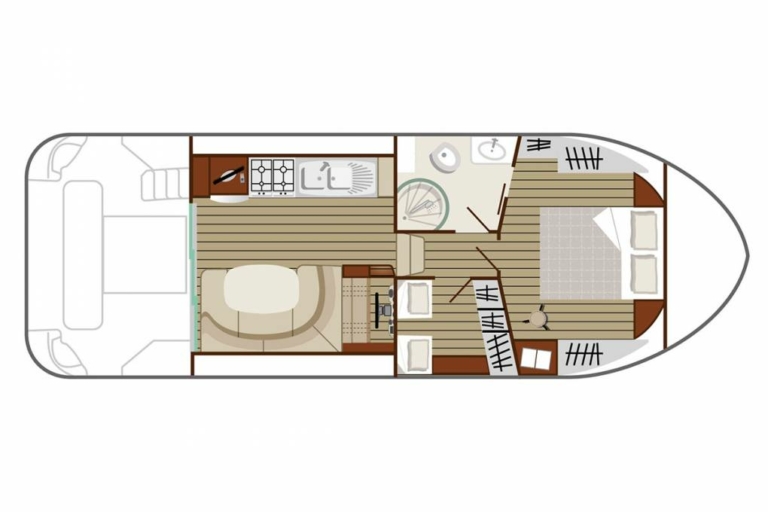 Les bateaux les plus facilement accessibles sont les bateaux Fly et Estivale des catégories Confort et Premium. Ces modèles ont été conçus pour faciliter l’embarquement et le débarquement. Le nombre de marches est limité, et un escalier directement moulé dans la coque permet d’accéder facilement au pont supérieur. Ces caractéristiques assurent un confort optimal, notamment pour les personnes ayant des difficultés de mobilité, tout en garantissant une navigation agréable et sans contrainte.