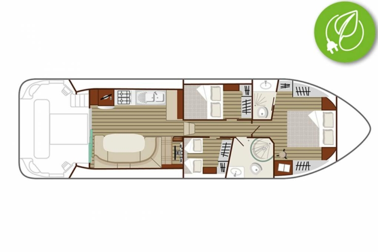 À bord, l'électricité fonctionne de manière simple alimentée par les batteries qui se rechargent en cours de navigation. Les bateaux sont tous équipés de prises USB et les plus confortables de prises électriques pour brancher vos appareils à faible consommation tels que des téléphones portables, des ordinateurs ou des tablettes. Lorsque vous êtes amarré à un ponton, il est possible de vous brancher à la prise de quai afin de bénéficier du 220 volts : vous pourrez ainsi faire fonctionner tous les appareils souhaités à bord. En navigation, pour brancher des appareils plus énergivores, vous pourrez utiliser un convertisseur 12/220 volts (en option payante) pour transformer l'énergie de la batterie en courant alternatif, vous permettant ainsi d’utiliser vos appareils. Vous bénéficiez donc d’une autonomie suffisante pendant la croisière, avec la possibilité de choisir cette option pour plus de confort.
