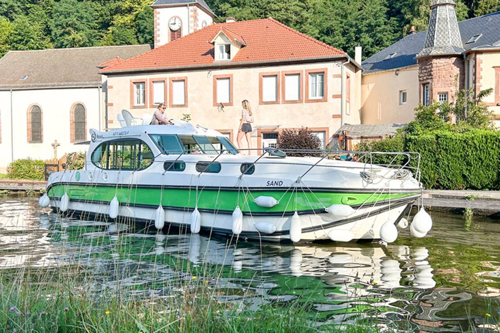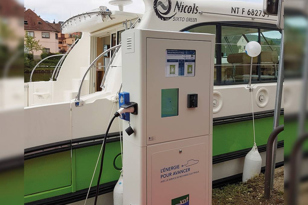 Avec le bateau électrique, vous avez toujours la possibilité de profiter de l'amarrage sauvage. Si vous avez rechargé vos batteries durant la journée, vous pouvez choisir un coin tranquille pour vous amarrer la nuit. Par ailleurs, vous pouvez profiter des bornes de recharge rapide, présentes à la fois en ville, pour accéder aux commerces et sites touristiques, et en pleine campagne. À la demande de Nicols, VNF a installé ces bornes dans des endroits reculés comme à Stambach ou Lupstein. Vous pouvez ainsi vous amarrer dans des lieux calmes, loin du bruit de la ville, tout en bénéficiant du confort d’un raccordement électrique pour la nuit.