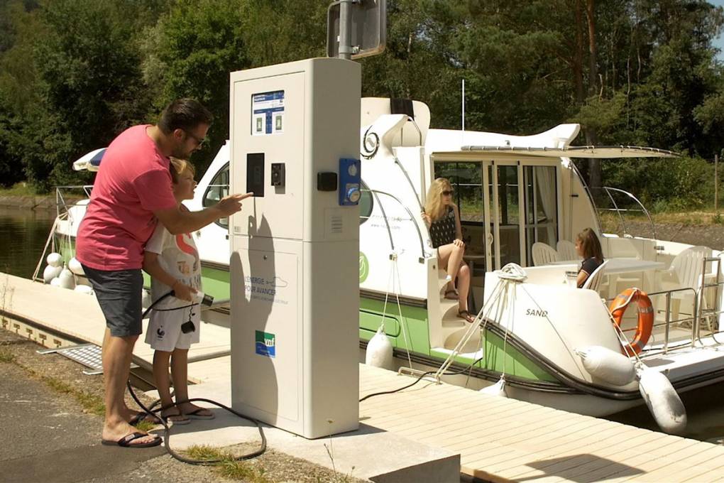 À bord, l'électricité fonctionne de manière simple alimentée par les batteries qui se rechargent en cours de navigation. Les bateaux sont tous équipés de prises USB et les plus confortables de prises électriques pour brancher vos appareils à faible consommation tels que des téléphones portables, des ordinateurs ou des tablettes. Lorsque vous êtes amarré à un ponton, il est possible de vous brancher à la prise de quai afin de bénéficier du 220 volts : vous pourrez ainsi faire fonctionner tous les appareils souhaités à bord. En navigation, pour brancher des appareils plus énergivores, vous pourrez utiliser un convertisseur 12/220 volts (en option payante) pour transformer l'énergie de la batterie en courant alternatif, vous permettant ainsi d’utiliser vos appareils. Vous bénéficiez donc d’une autonomie suffisante pendant la croisière, avec la possibilité de choisir cette option pour plus de confort.
