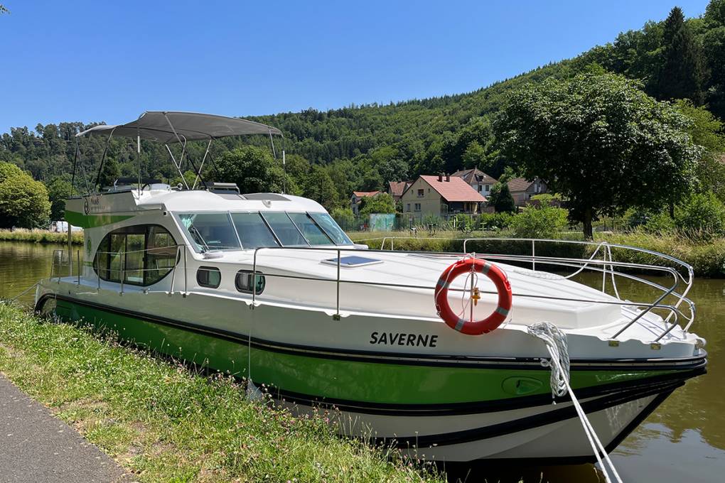 Avec le bateau électrique, vous avez toujours la possibilité de profiter de l'amarrage sauvage. Si vous avez rechargé vos batteries durant la journée, vous pouvez choisir un coin tranquille pour vous amarrer la nuit. Par ailleurs, vous pouvez profiter des bornes de recharge rapide, présentes à la fois en ville, pour accéder aux commerces et sites touristiques, et en pleine campagne. À la demande de Nicols, VNF a installé ces bornes dans des endroits reculés comme à Stambach ou Lupstein. Vous pouvez ainsi vous amarrer dans des lieux calmes, loin du bruit de la ville, tout en bénéficiant du confort d’un raccordement électrique pour la nuit.