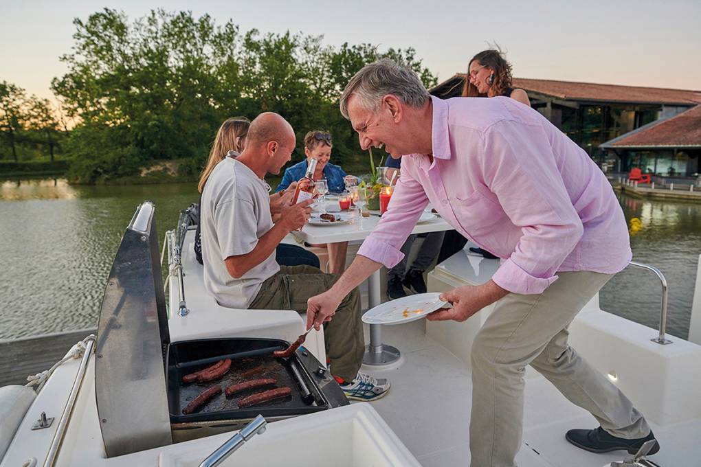 À bord, l'électricité fonctionne de manière simple alimentée par les batteries qui se rechargent en cours de navigation. Les bateaux sont tous équipés de prises USB et les plus confortables de prises électriques pour brancher vos appareils à faible consommation tels que des téléphones portables, des ordinateurs ou des tablettes. Lorsque vous êtes amarré à un ponton, il est possible de vous brancher à la prise de quai afin de bénéficier du 220 volts : vous pourrez ainsi faire fonctionner tous les appareils souhaités à bord. En navigation, pour brancher des appareils plus énergivores, vous pourrez utiliser un convertisseur 12/220 volts (en option payante) pour transformer l'énergie de la batterie en courant alternatif, vous permettant ainsi d’utiliser vos appareils. Vous bénéficiez donc d’une autonomie suffisante pendant la croisière, avec la possibilité de choisir cette option pour plus de confort.