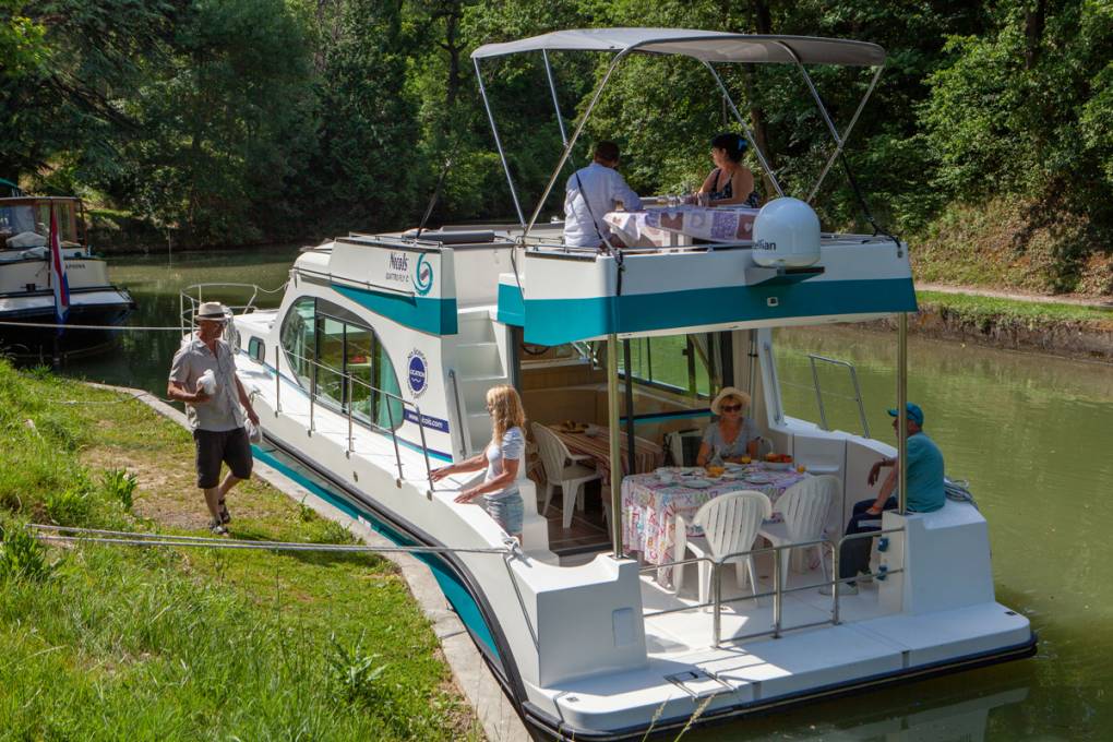 Organiser une croisière en aller-retour avec Nicols, c’est choisir votre itinéraire en toute liberté. Vous pouvez vous arrêter où vous voulez, quand vous voulez, et si vous trouvez un endroit particulièrement agréable, il est possible de vous y amarrer plusieurs jours. Il suffit simplement de ramener le bateau à la base à l’heure et au jour prévus. L’aller-retour ne génère aucun frais supplémentaire. De plus, n’oubliez pas que le paysage se révèle sous un autre angle lorsque vous le découvrez dans le sens inverse, offrant ainsi une expérience renouvelée à chaque étape.