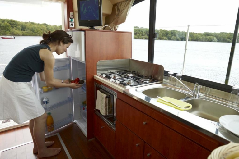 À bord, l'électricité fonctionne de manière simple alimentée par les batteries qui se rechargent en cours de navigation. Les bateaux sont tous équipés de prises USB et les plus confortables de prises électriques pour brancher vos appareils à faible consommation tels que des téléphones portables, des ordinateurs ou des tablettes. Lorsque vous êtes amarré à un ponton, il est possible de vous brancher à la prise de quai afin de bénéficier du 220 volts : vous pourrez ainsi faire fonctionner tous les appareils souhaités à bord. En navigation, pour brancher des appareils plus énergivores, vous pourrez utiliser un convertisseur 12/220 volts (en option payante) pour transformer l'énergie de la batterie en courant alternatif, vous permettant ainsi d’utiliser vos appareils. Vous bénéficiez donc d’une autonomie suffisante pendant la croisière, avec la possibilité de choisir cette option pour plus de confort.